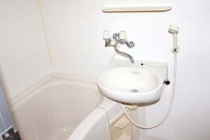 キッチン、給湯設備、換気扇、浴室、洗面台、トイレ、温水洗浄便座